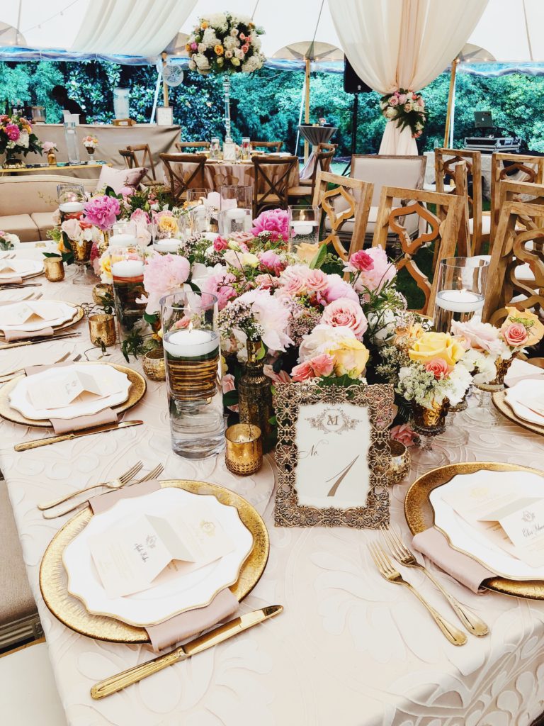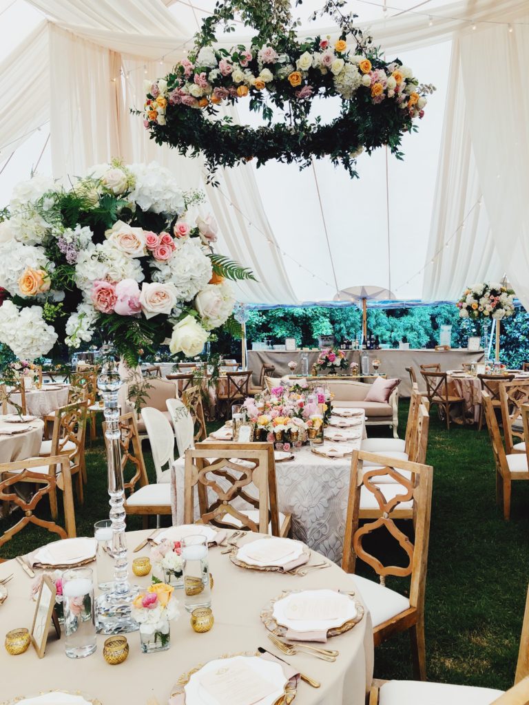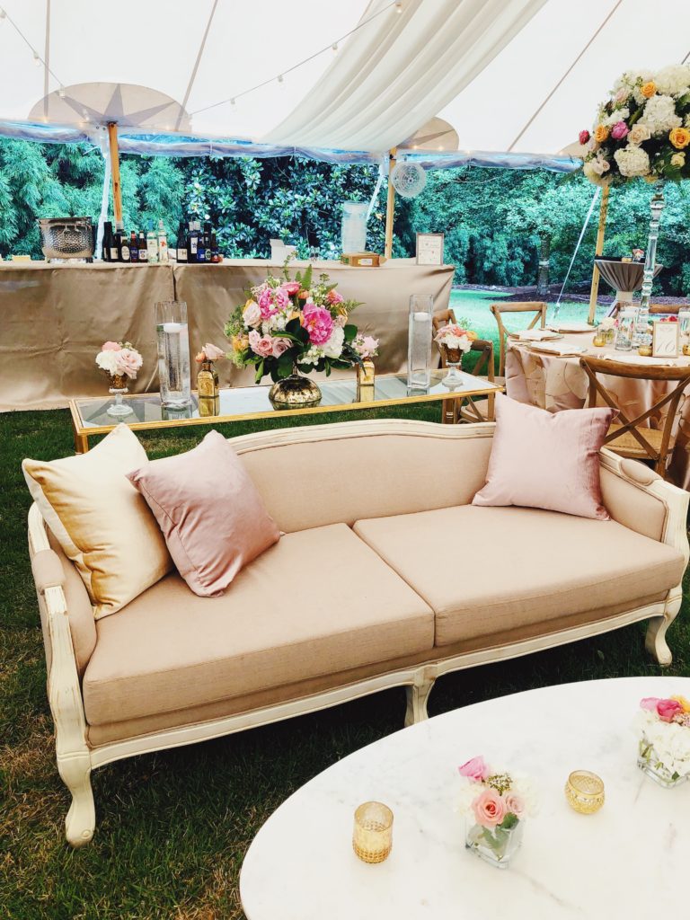 With a stellar team of vendors, we were able to take this empty back yard and make it into the reception tent of dreams!
