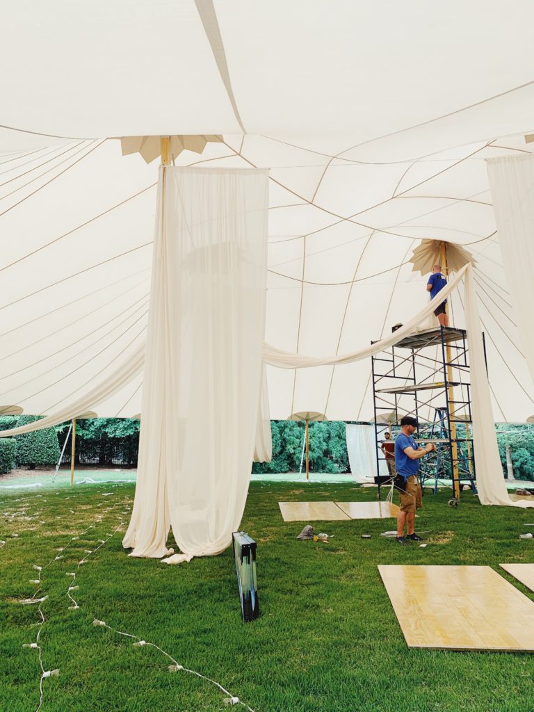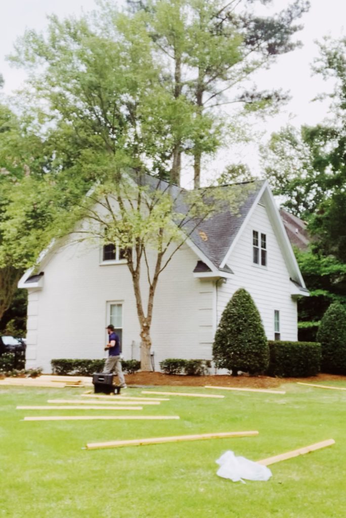 This year we have been sharing a behind the scenes before and after transformation for each wedding we have designed, so we want to keep up this series by sharing this back yard transformation. Talk about a blank canvas!
