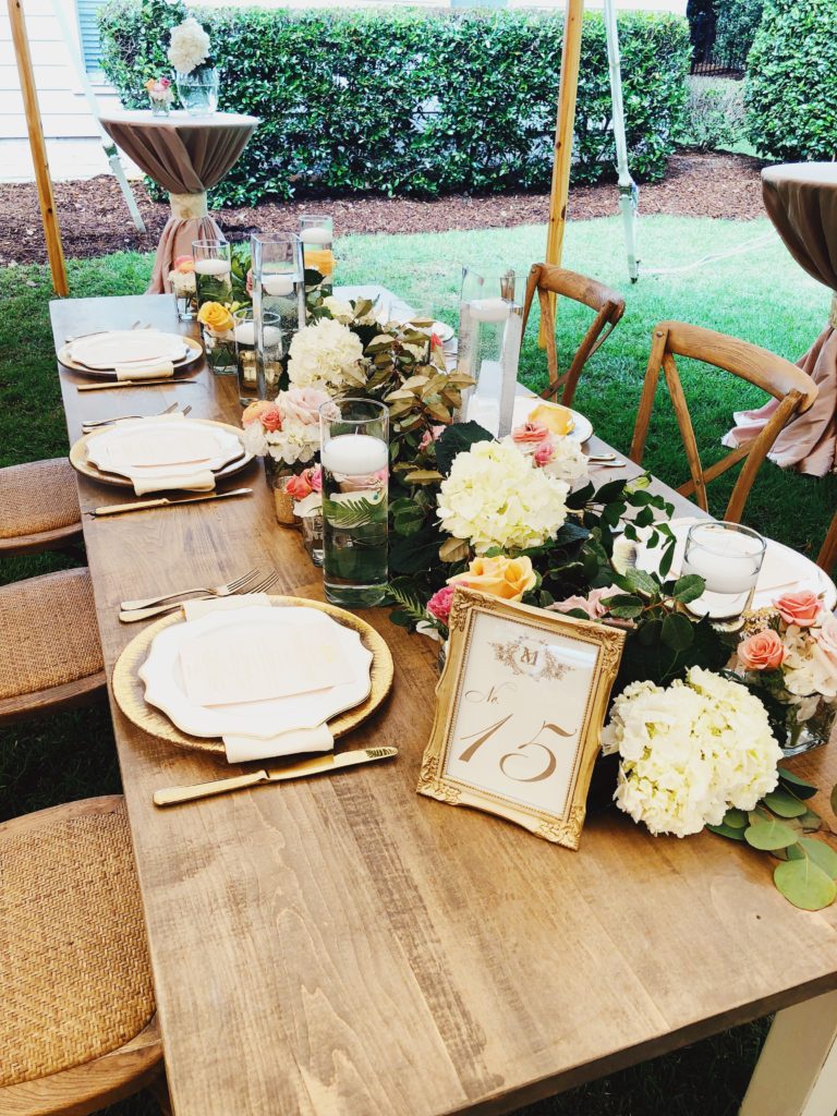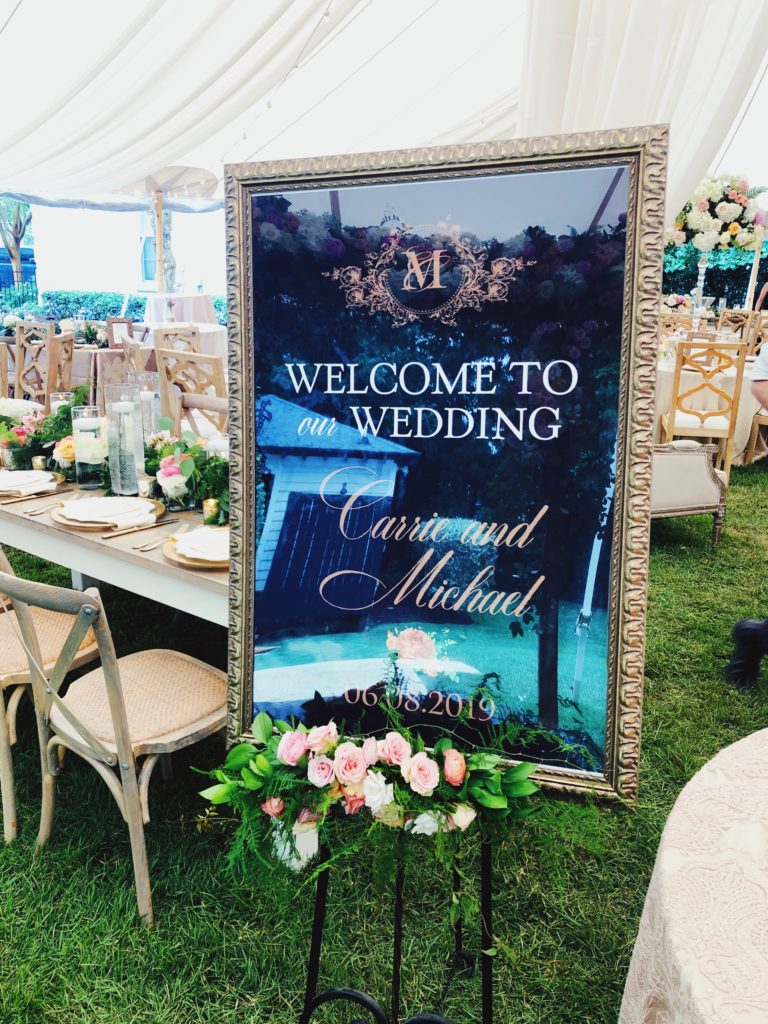 Some of our favorite weddings to date have been private home tented weddings and Mike and Carrie’s wedding was no exception! Mike and Carrie had a vision for their Bermuda themed wedding to be held in their beautiful back yard where guests could enjoy their pool and tiki bar all night long. When Gina heard their vision she jumped right in to make this dream come to life in a quick 5 month plan!