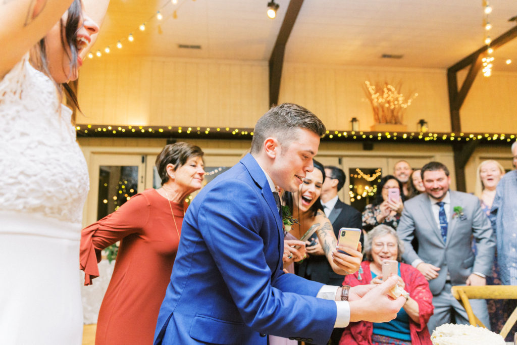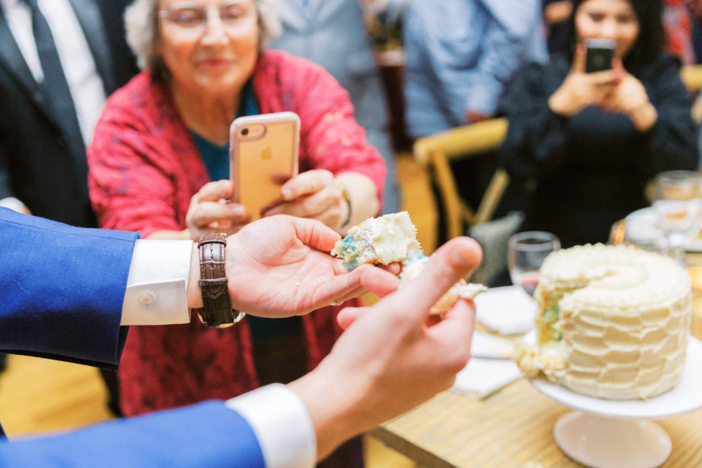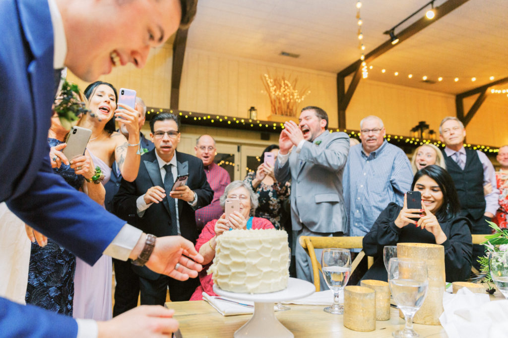 Today we are sharing the sweetest moment from one of our recent weddings. Karsten + Drew decided to do the gender reveal for baby Love at their wedding! Right after the traditional cake cutting, the couple cut into a separate gender reveal cake. The couple and their guests were strongly on team boy, but you will just have to scroll down to see if baby Love will be a boy or girl!