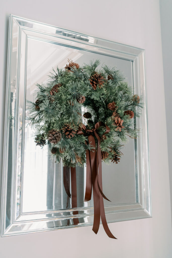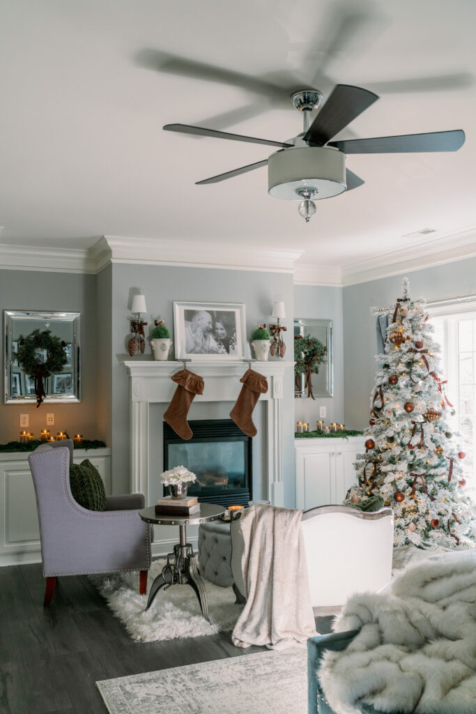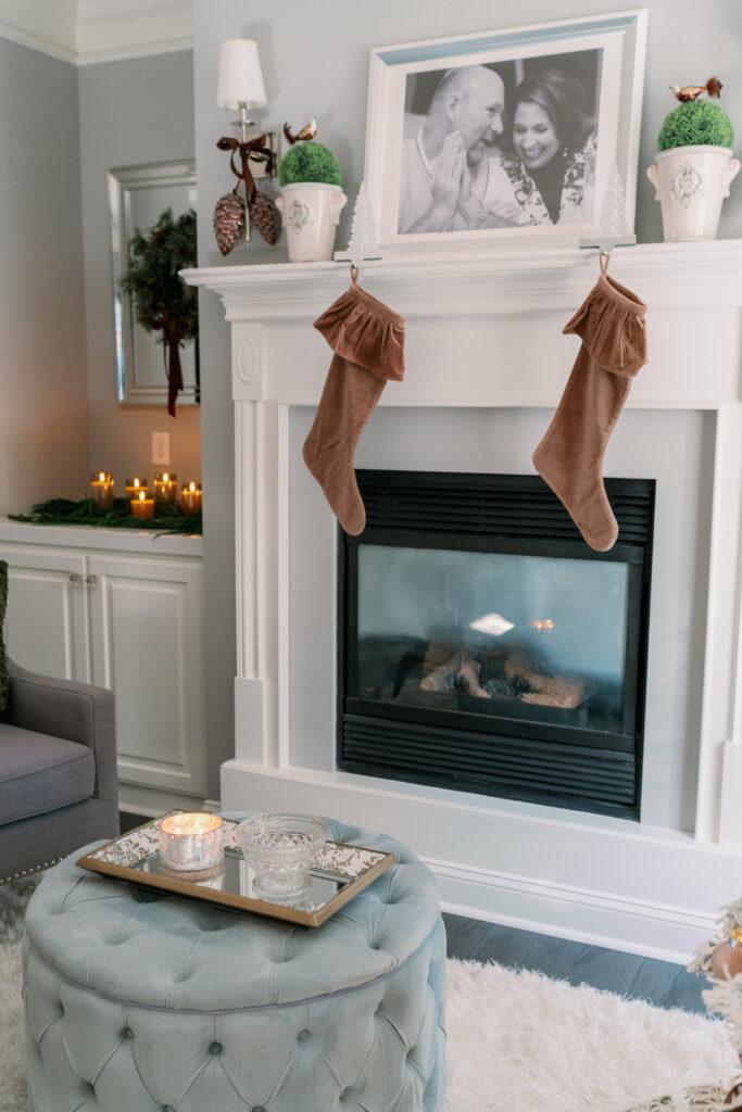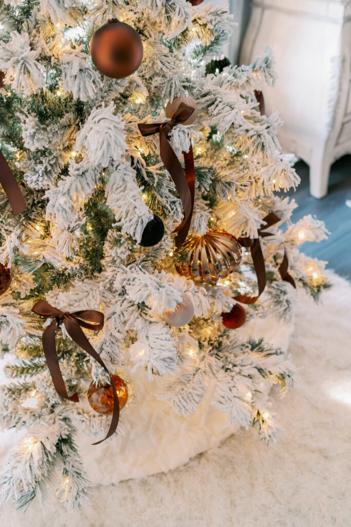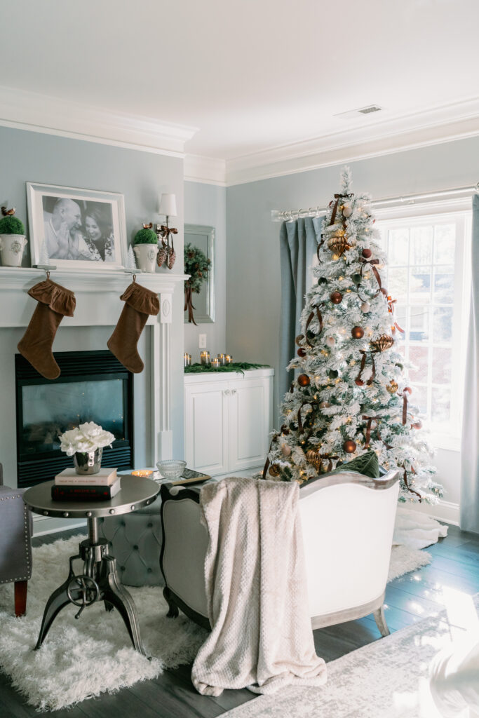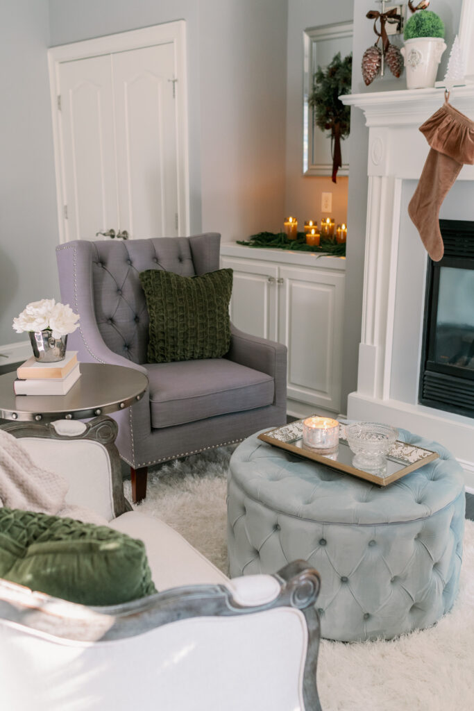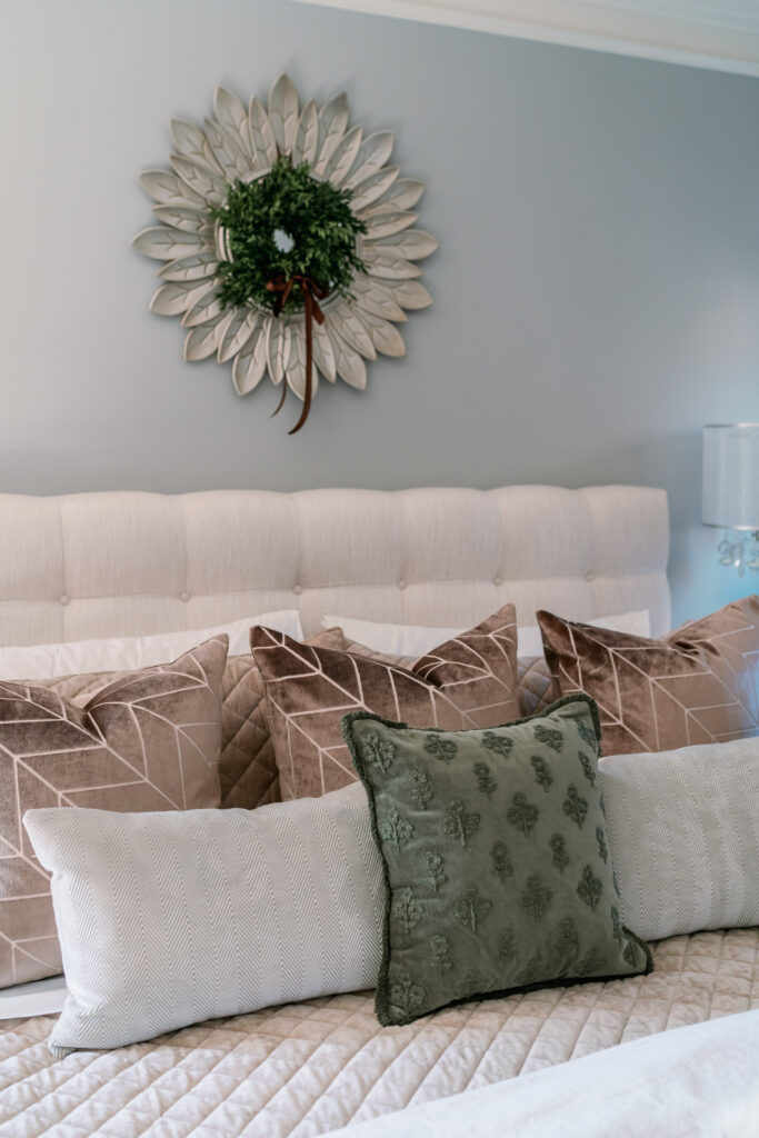 I had so much fun pulling together Christmas elements for our master bedroom. I fell in love with the brown velvet geometric pillows a few years ago. They were the inspiration for the Christmas design. Yes, you can incorporate brown and grey into Christmas. I hope you find this room to be as cozy as we do!