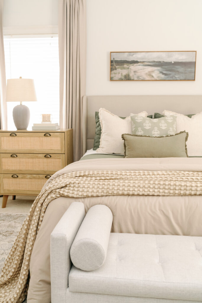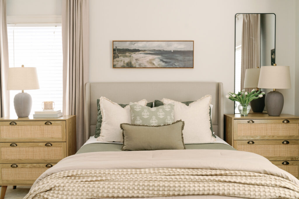 I absolutely love having a Guest Room again! Technically this is my oldest son’s room when he visits so I tried to be mindful of the colors that were used. Lots of olive green, grey and taupe. Given I was doing this with a budget in mind, hopefully many of these items will have an affordability appeal.