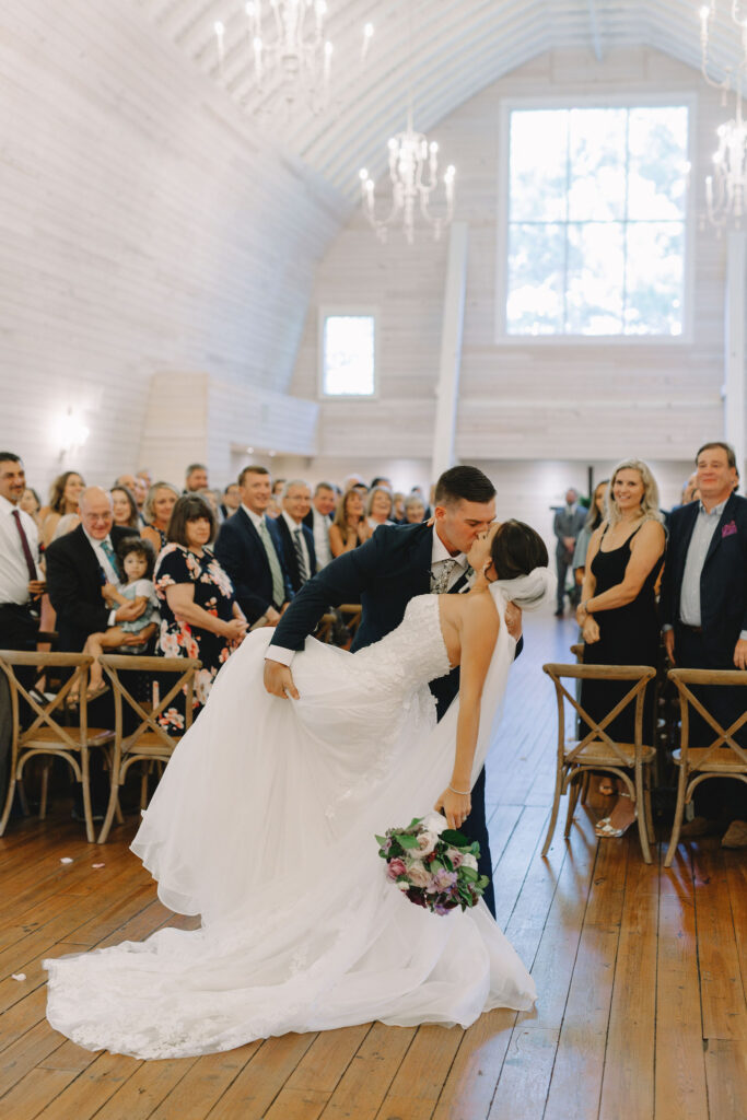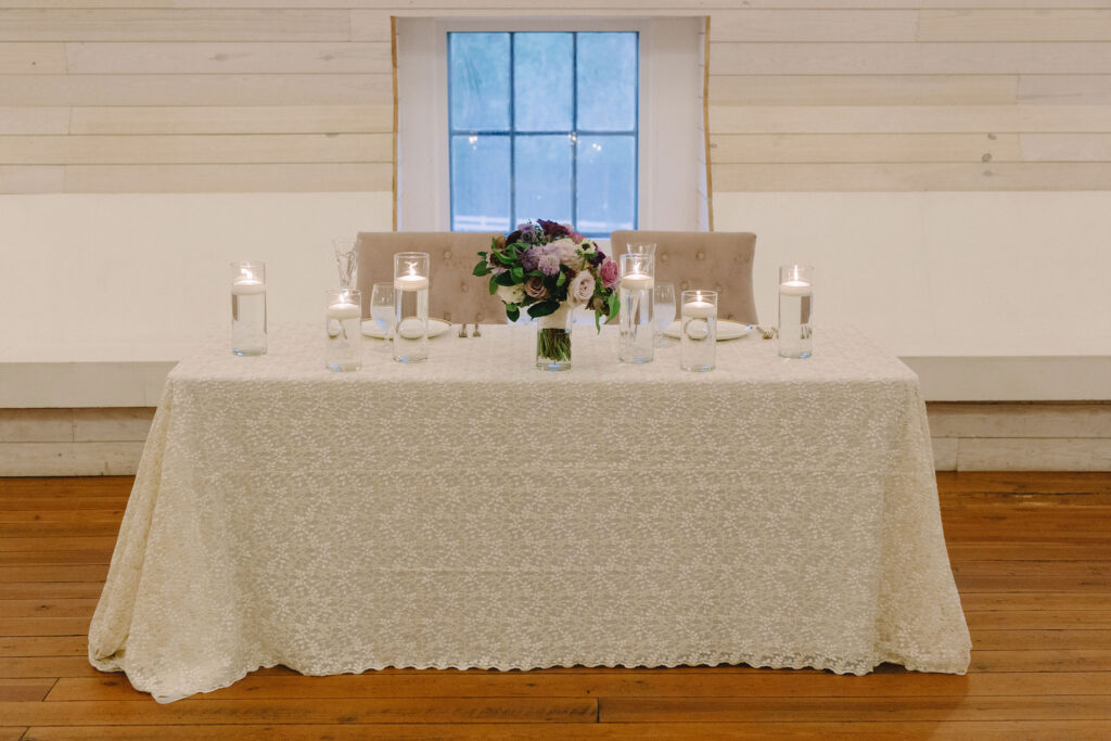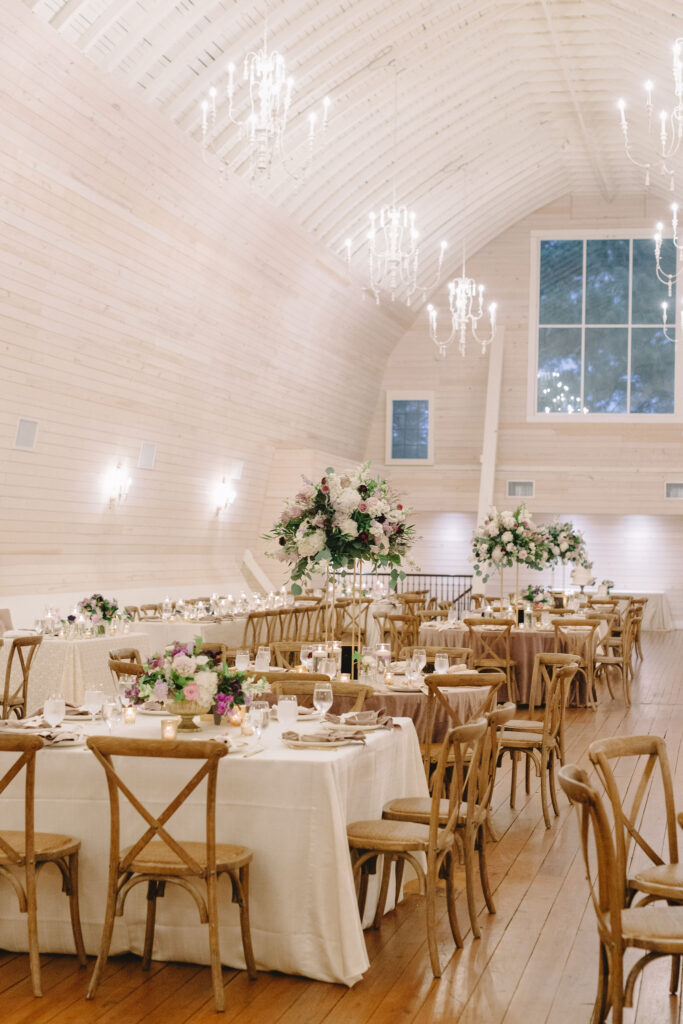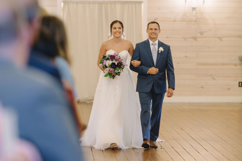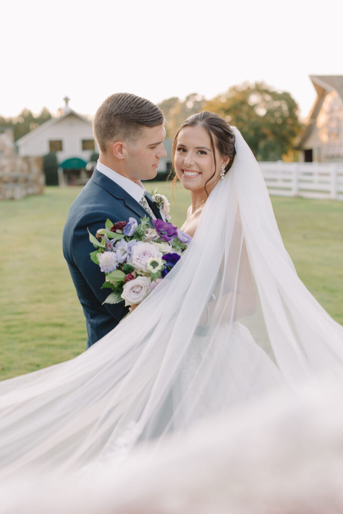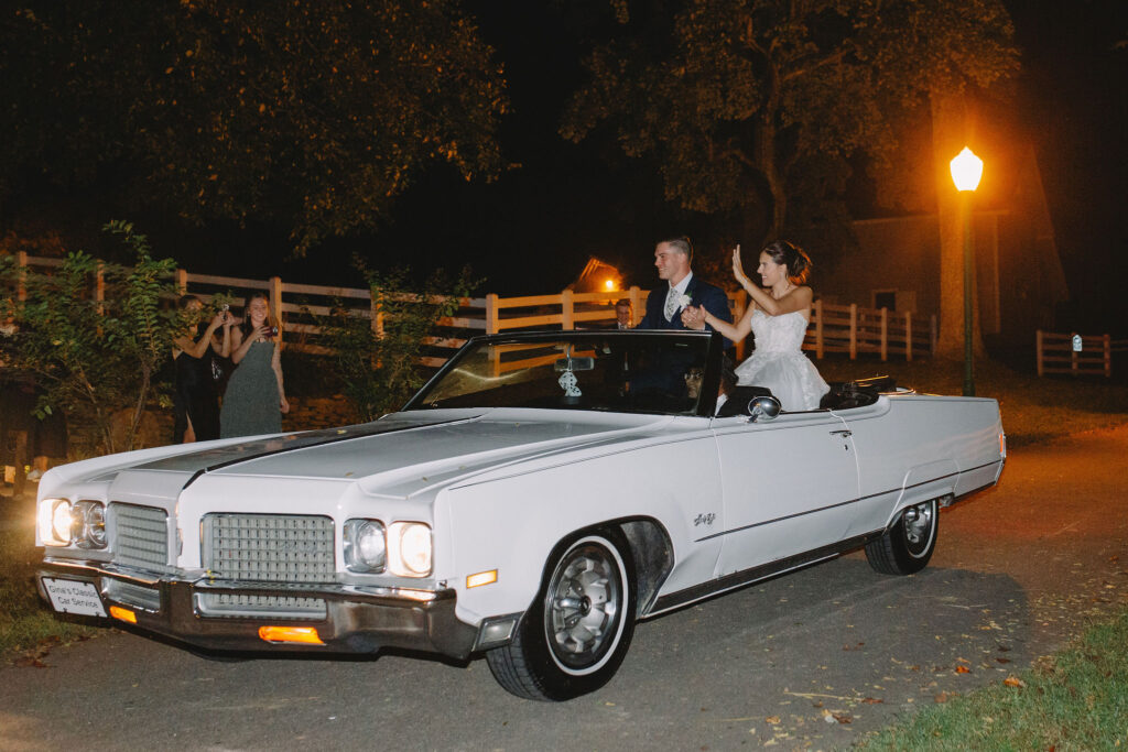 This romantic wedding at The Historic Wakefield Barn was the perfect blend of timeless elegance and modern charm. Set against the rustic beauty of this North Carolina wedding venue, the day featured soft, romantic details with pops of purple florals and lush greenery. From the candlelit reception to the picturesque barn setting, every moment of this Wakefield Barn wedding was full of love, laughter, and style. Caroline & Lucas ended the evening with their exit in a classic convertible getaway car!