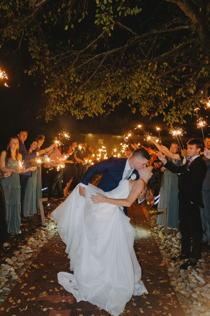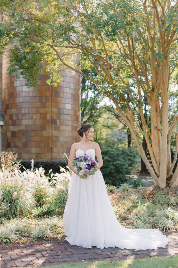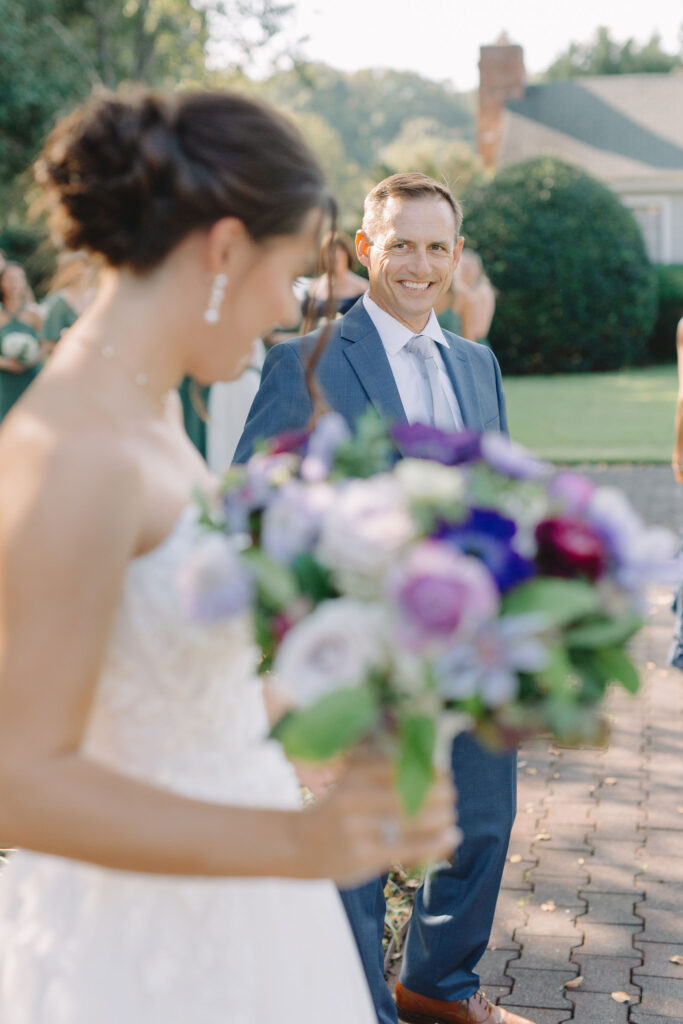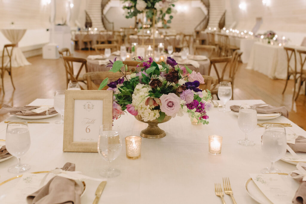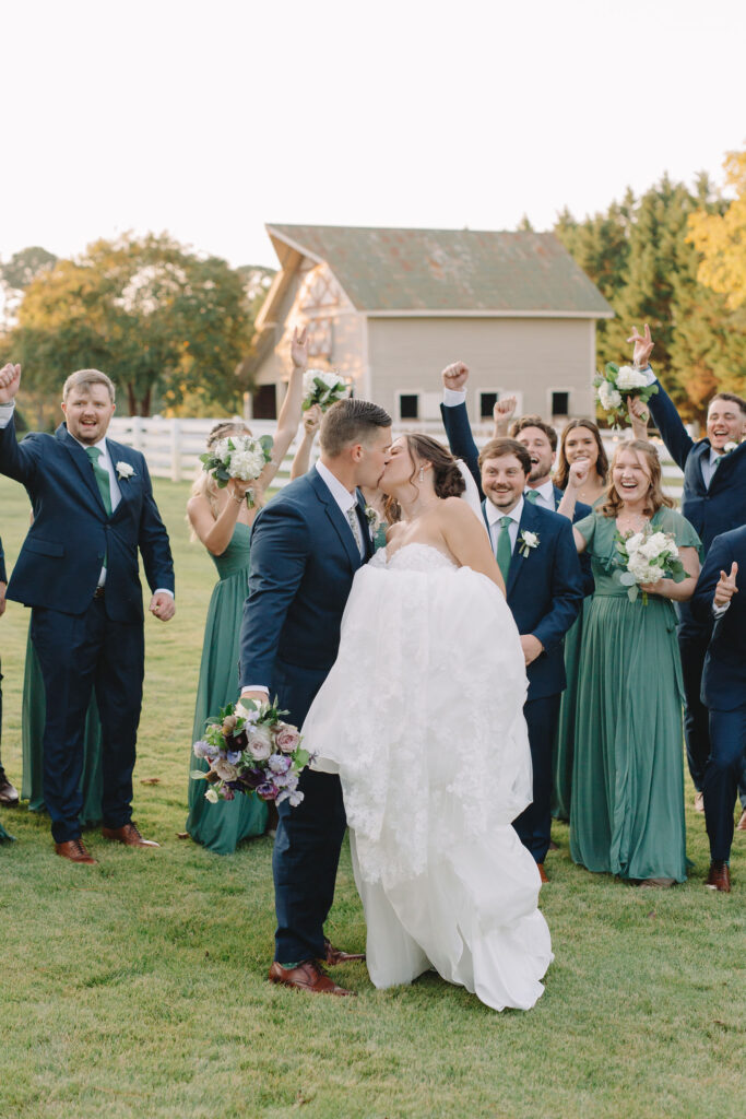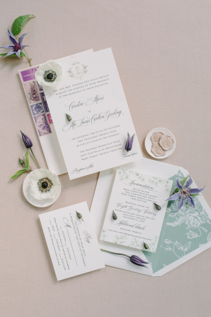 This romantic wedding at The Historic Wakefield Barn was the perfect blend of timeless elegance and modern charm. Set against the rustic beauty of this North Carolina wedding venue, the day featured soft, romantic details with pops of purple florals and lush greenery. From the candlelit reception to the picturesque barn setting, every moment of this Wakefield Barn wedding was full of love, laughter, and style. Caroline & Lucas ended the evening with their exit in a classic convertible getaway car!