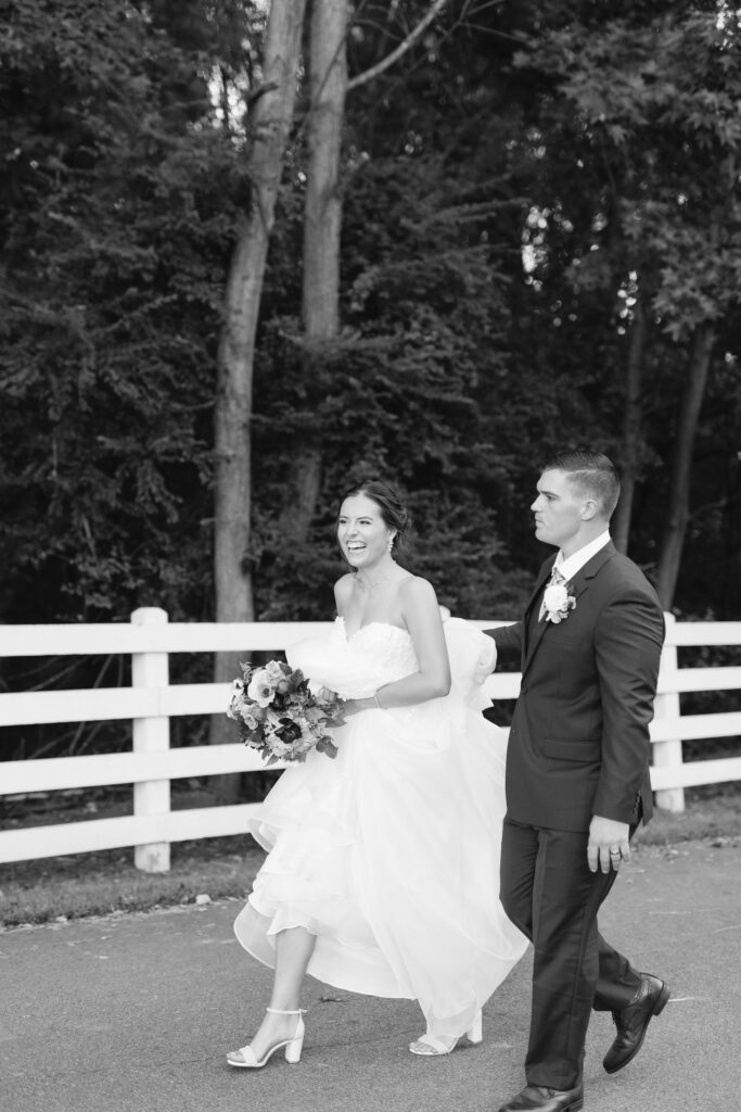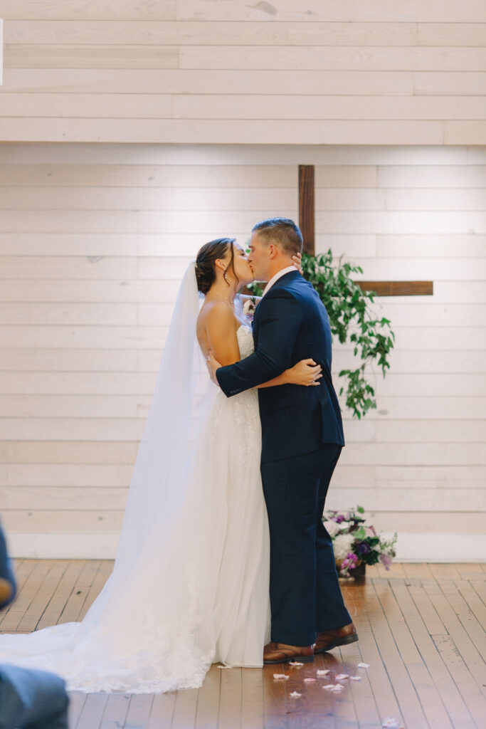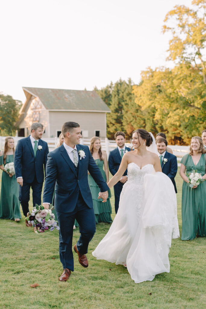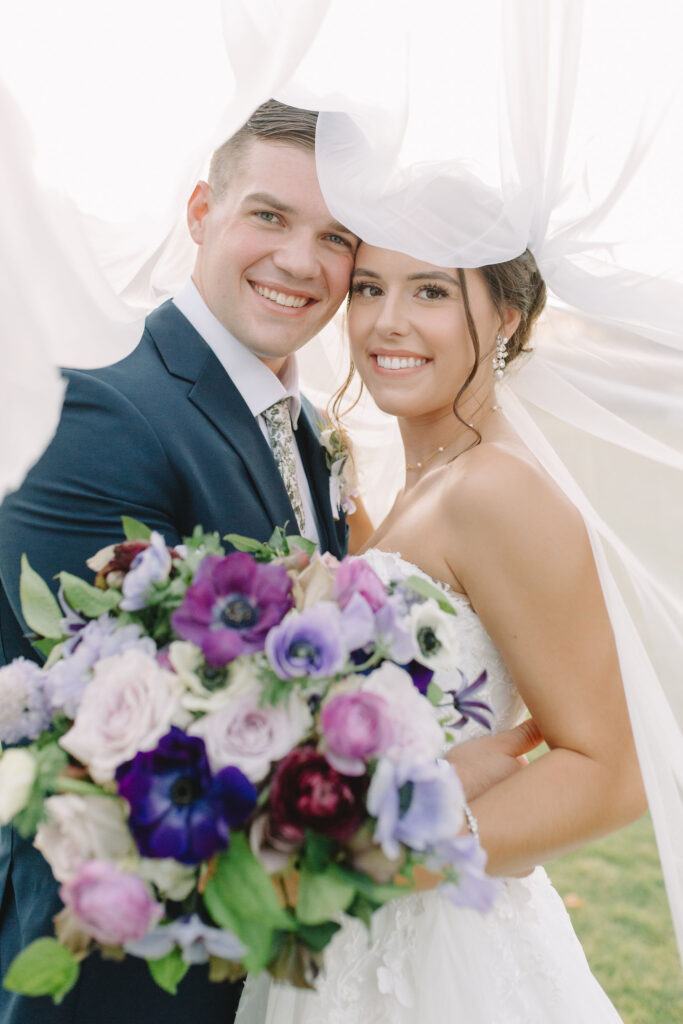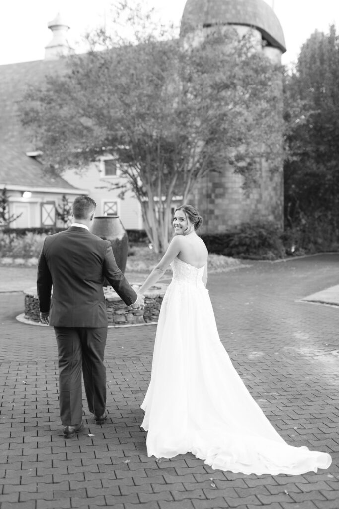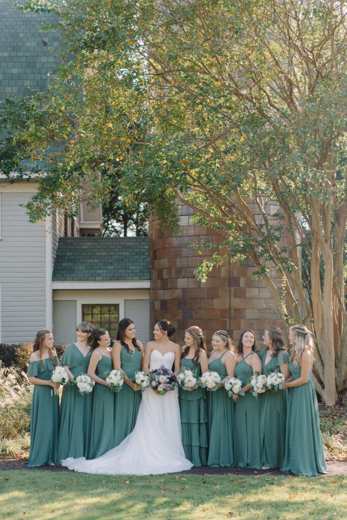 This romantic wedding at The Historic Wakefield Barn was the perfect blend of timeless elegance and modern charm. Set against the rustic beauty of this North Carolina wedding venue, the day featured soft, romantic details with pops of purple florals and lush greenery. From the candlelit reception to the picturesque barn setting, every moment of this Wakefield Barn wedding was full of love, laughter, and style. Caroline & Lucas ended the evening with their exit in a classic convertible getaway car!